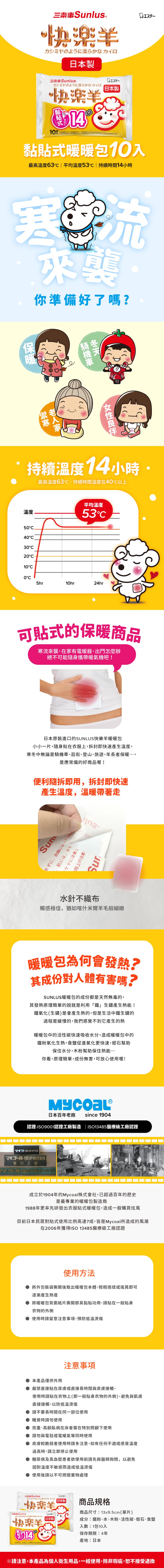 ※效期:2026/11月 ●最高溫度63℃/平均溫度53℃ ●持續14小時維持在40℃以上 ●日本百年大廠製造,品質保障