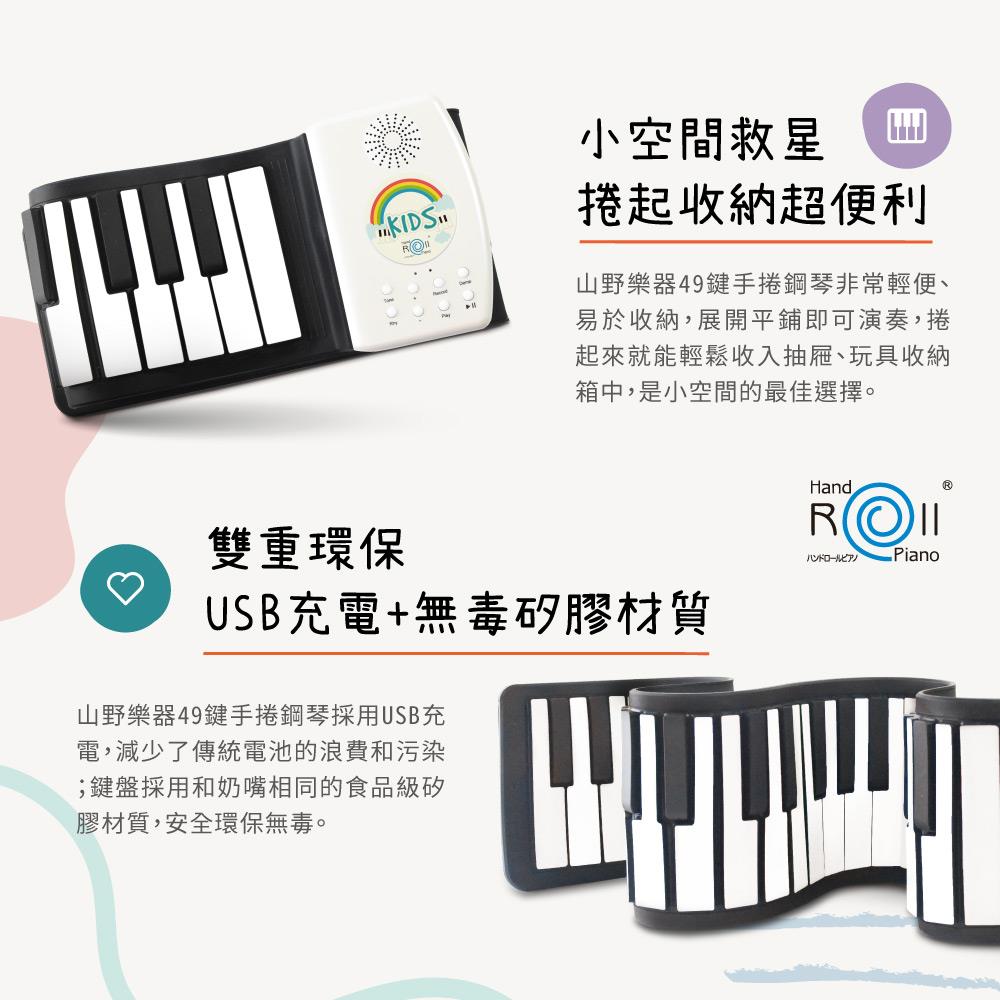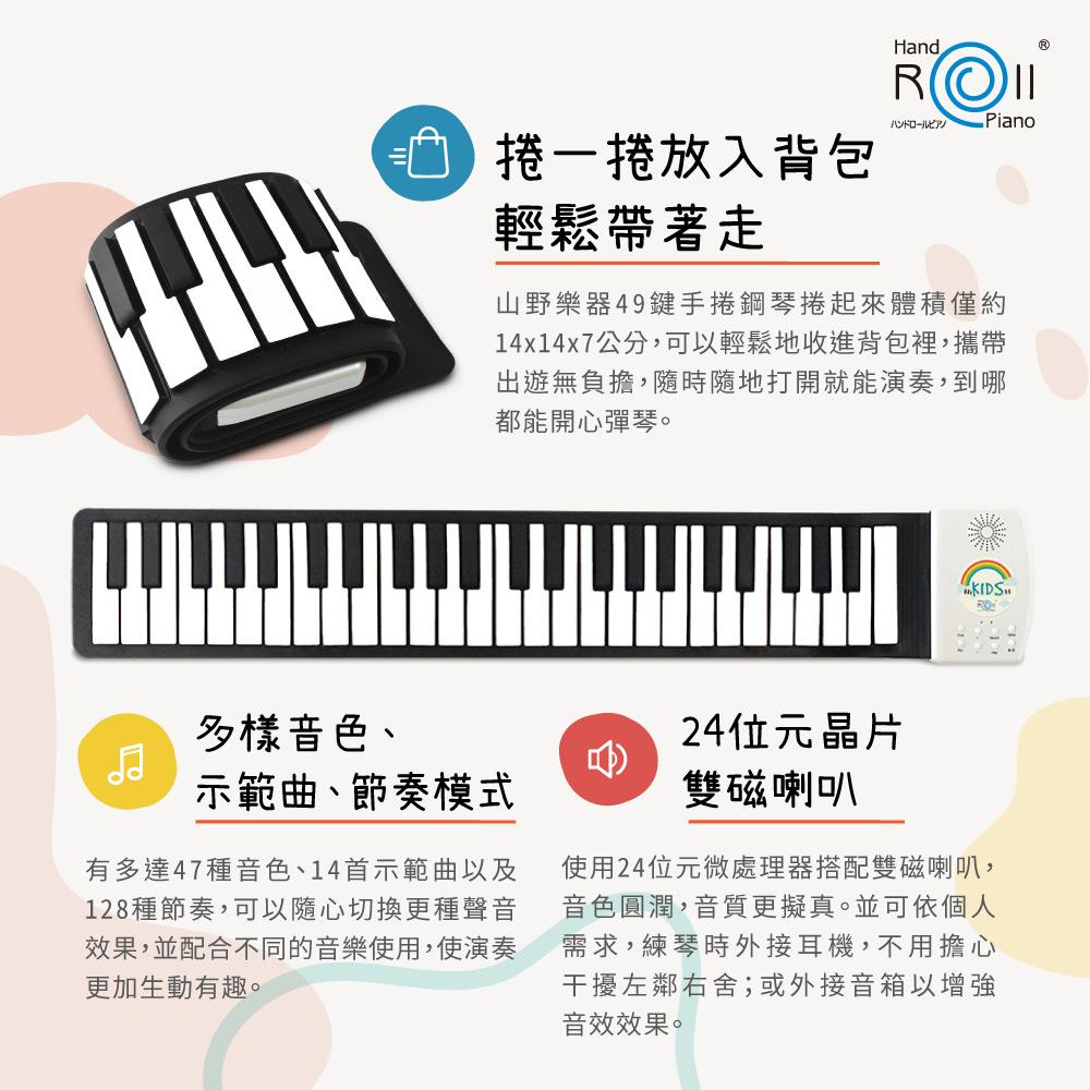 【山野樂器】49鍵兒童手捲鋼琴 USB迷你電子琴
