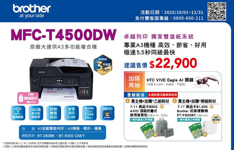 ★請注意:印表機購買金額若低於贈品最低登錄金額(詳見官網),恕不再適用原廠上網登錄送活動。