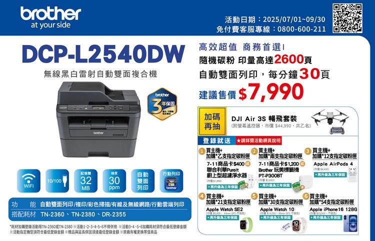 (機+粉)Brother HL-L2540DW+TN-2360 超值組→點我進入