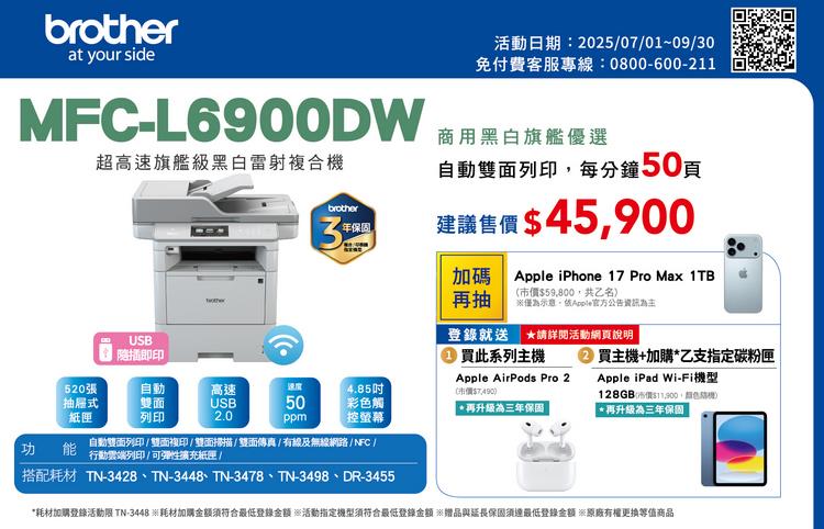 Brother MFC-L6900DW 高速無線黑白雷射旗艦複合機