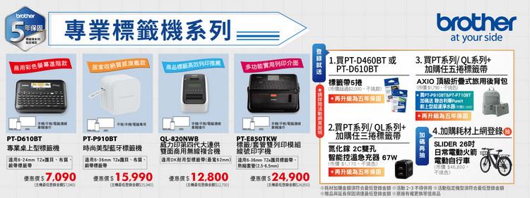 ★請注意:標籤機+標籤帶購買金額若低於贈品最低登錄金額(詳見官網),恕不再適用原廠上網登錄送相關活動。