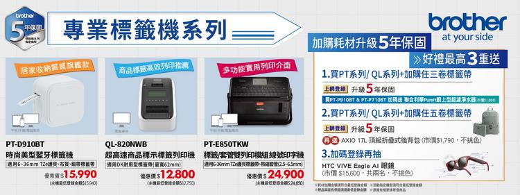 ★請注意:標籤機+標籤帶購買金額若低於贈品最低登錄金額(詳見官網),恕不再適用原廠上網登錄送相關活動。