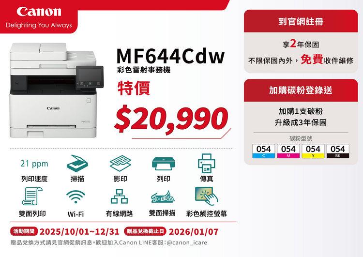 Canon imageCLASS MF644Cdw彩色雷射傳真事務機