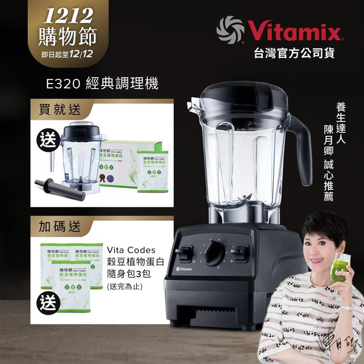【送1.4L容杯+穀豆單白盒裝】美國Vitamix全食物調理機E320 Explorian探索者-黑-台灣公司貨-陳月卿推薦