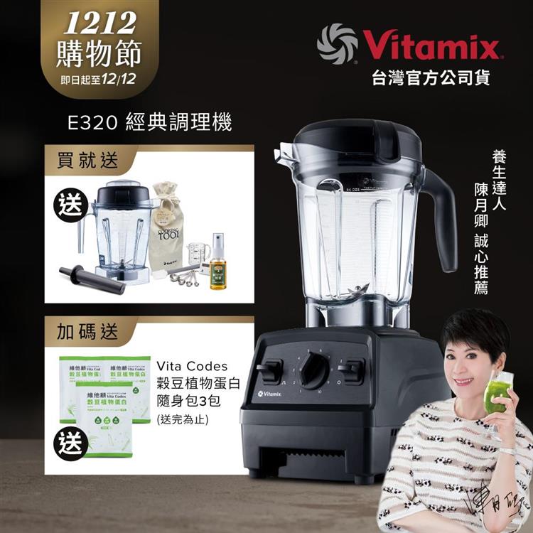 【送1.4L容杯+工具組】美國Vitamix全食物調理機E320 Explorian探索者-黑-台灣公司貨-陳月卿推薦