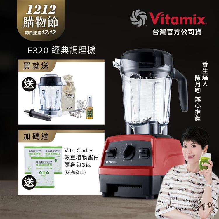 【送1.4L容杯+工具組】美國Vitamix全食物調理機E320 Explorian探索者-紅-台灣公司貨-陳月卿推薦