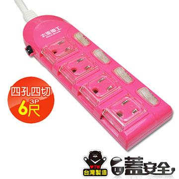 【太星電工】 蓋安全彩色延長線四開四插 (1.8M) 橙.紅.綠