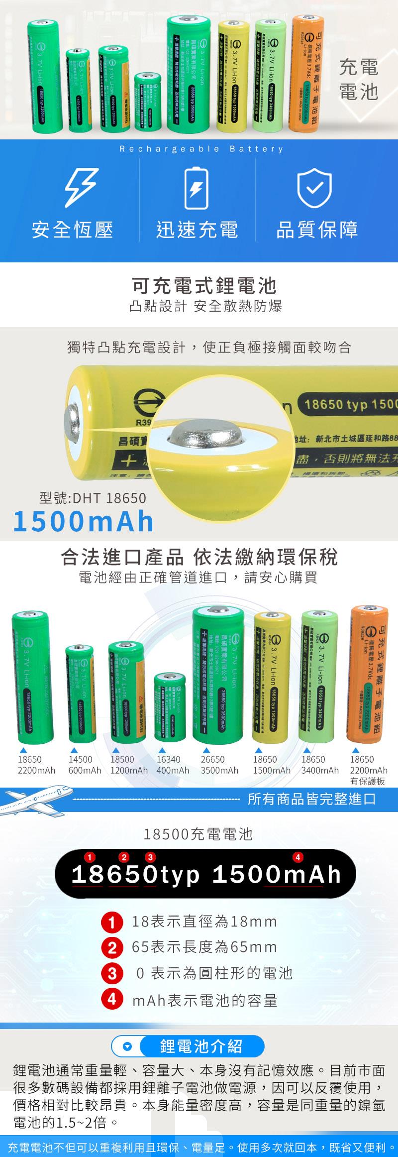 CS昌碩 18650 充電電池(2入) 1500mAh/顆