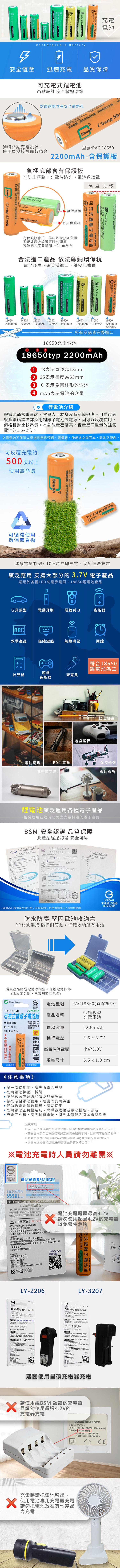 台灣BSMI保障認證/2200mAh電池容量/循環使用 環保又方便