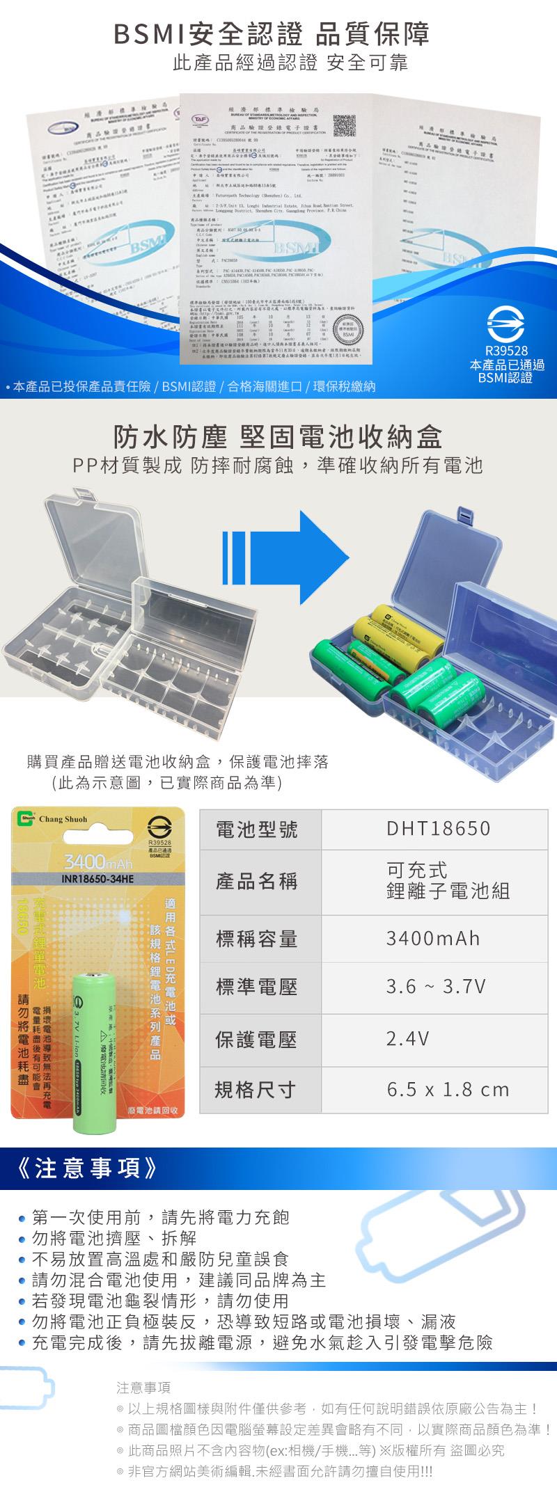 CS昌碩 18650 充電電池(2入) 3400mAh/顆