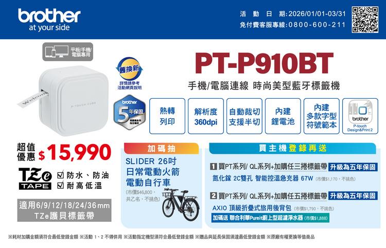 ★請注意:標籤機+標籤帶購買金額若低於贈品最低登錄金額(詳見官網),恕不再適用原廠上網登錄送相關活動。