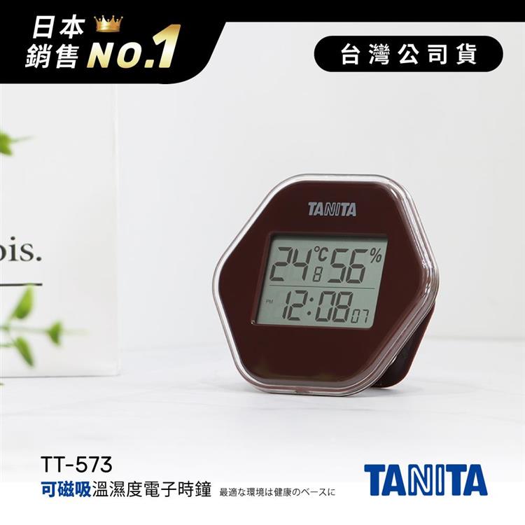 日本TANITA溫濕度電子時鐘TT573-咖啡色-台灣公司貨
