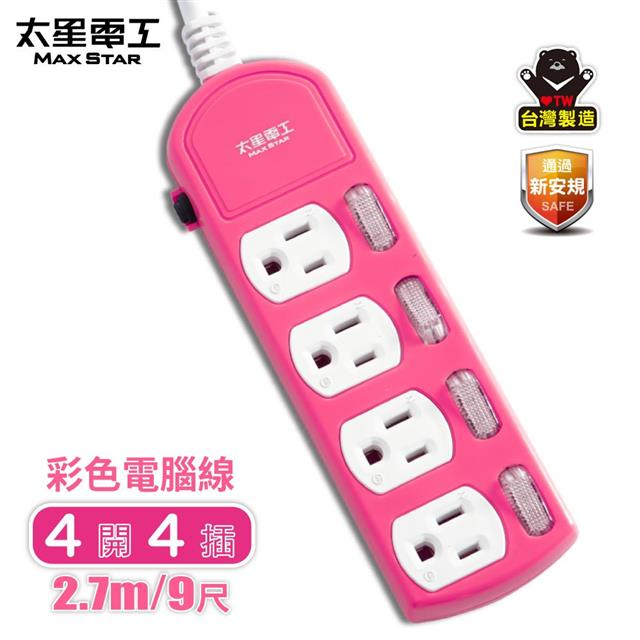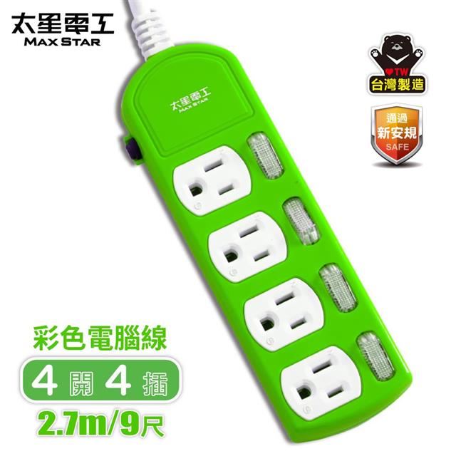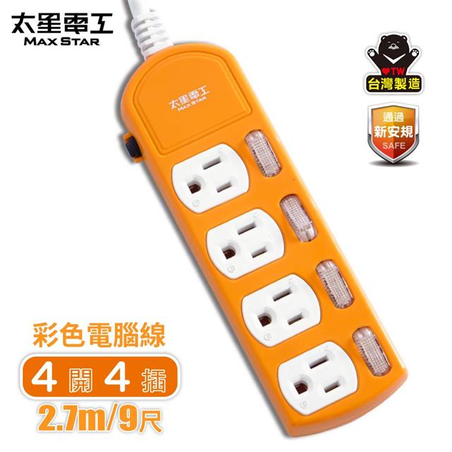 【太星電工】 四開四插彩色電腦線3P15A(9尺)紅.橙.綠 任選 OCB44309