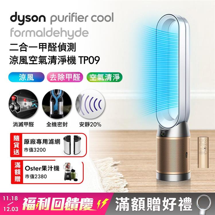 Dyson戴森 二合一甲醛測涼風扇空氣清淨機 TP09 白金色【送原廠濾網+Oster果汁機】