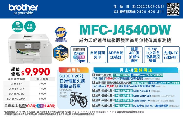 Brother MFC-J4540DW 威力印輕連供 商用雙面網路雙紙匣傳真事務機