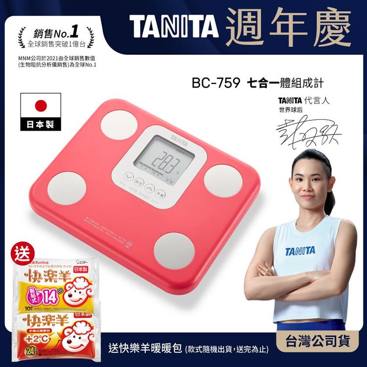 日本TANITA七合一體組成計BC-759-三色選-台灣公司貨(日本製)-桃紅