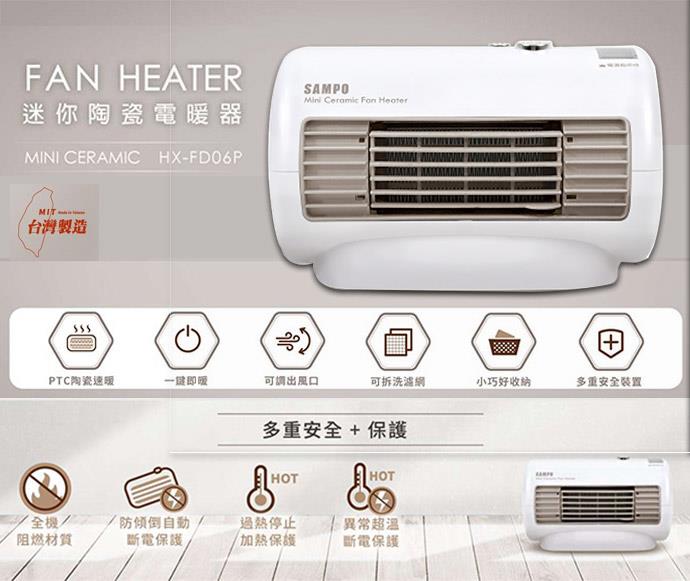 【聲寶SAPMPO】迷你陶瓷式電暖器 HX-FD06P