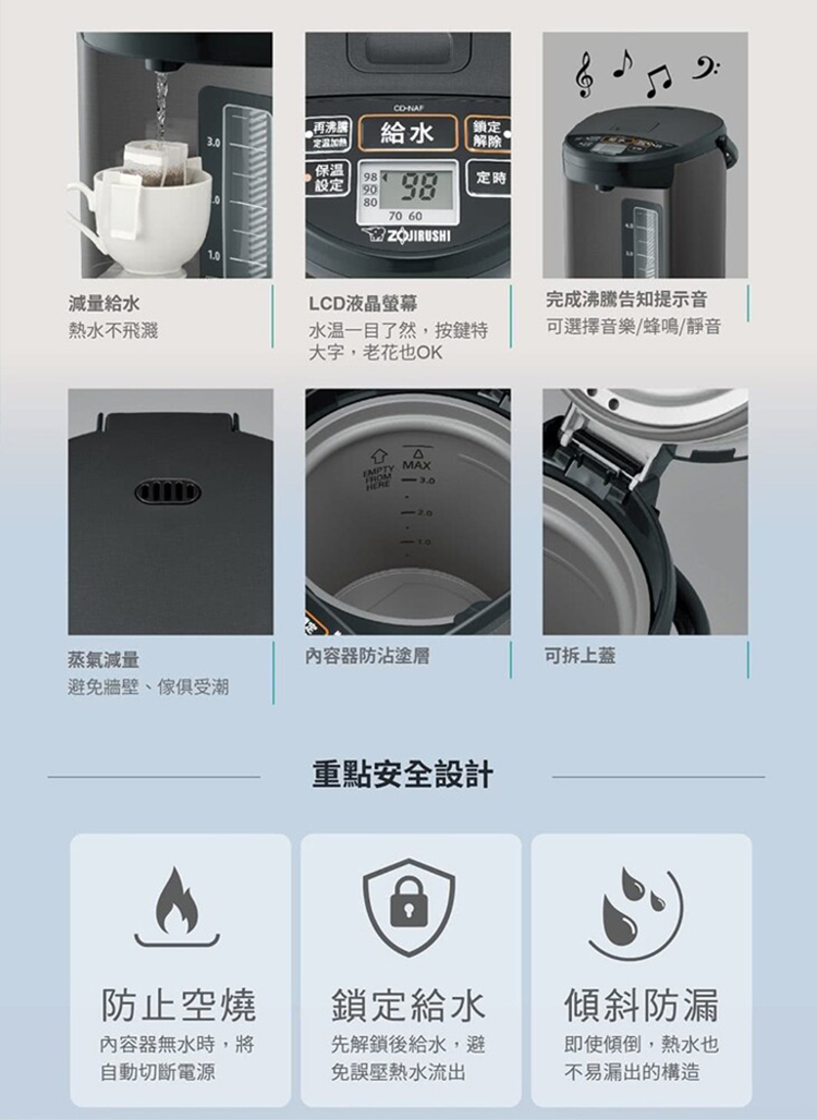 「液晶螢幕顯示」,水温一目了然。按鍵特大字,老花也OK
