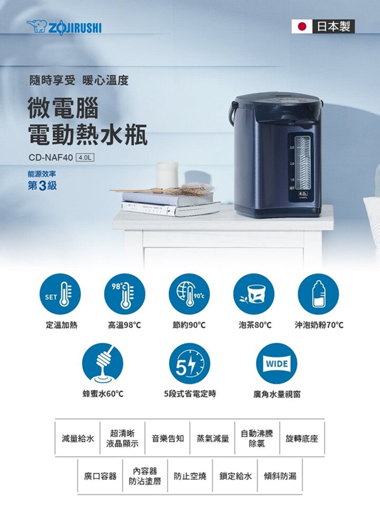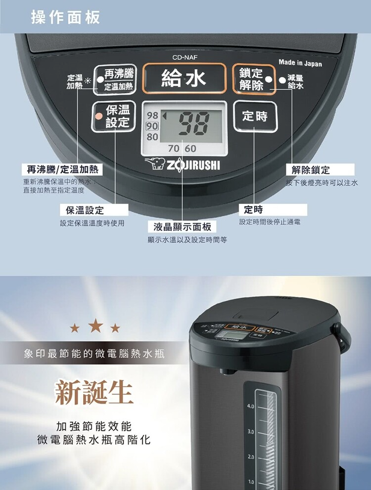 【ZOJIRUSHI 象印】4公升微電腦電動熱水瓶(CD-NAF40)