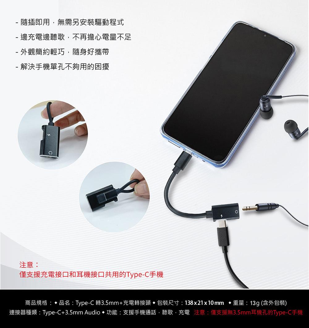 品名:Type-C 轉3.5mm+充電轉接頭