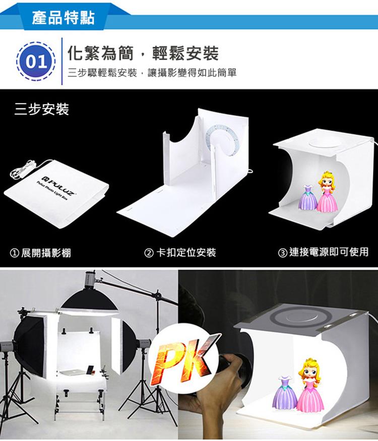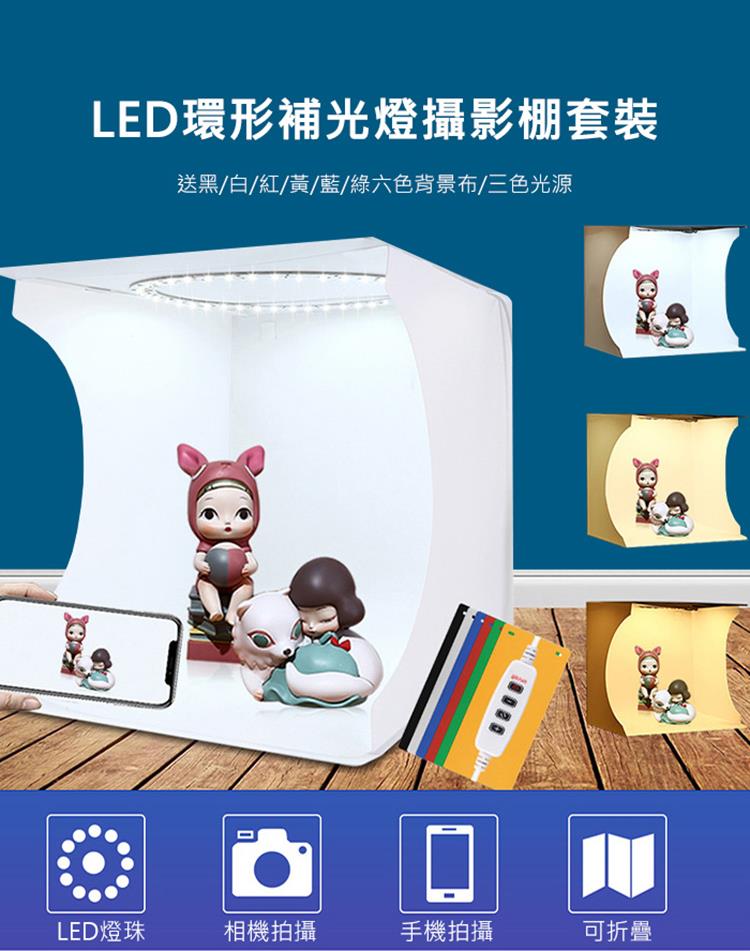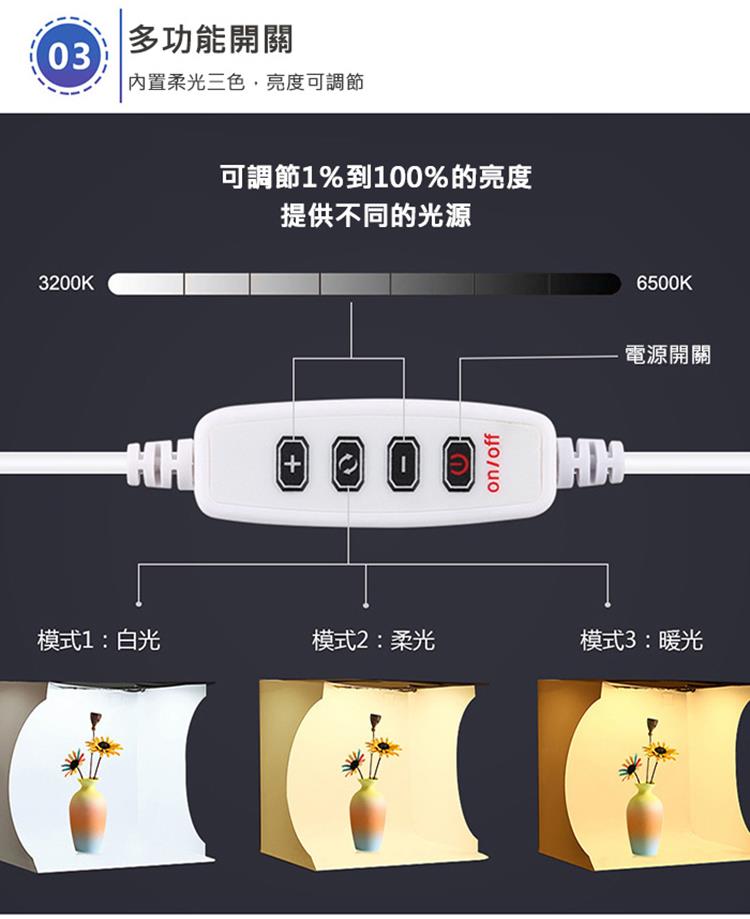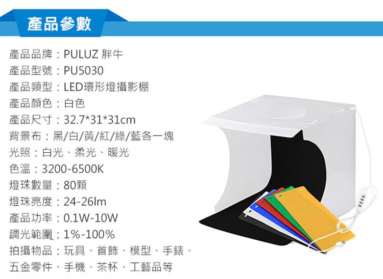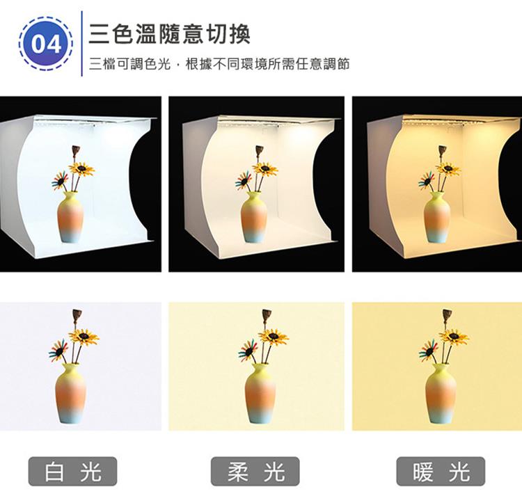 【品名】:胖牛 LED迷你攝影棚(33x31x31cm)-三色溫