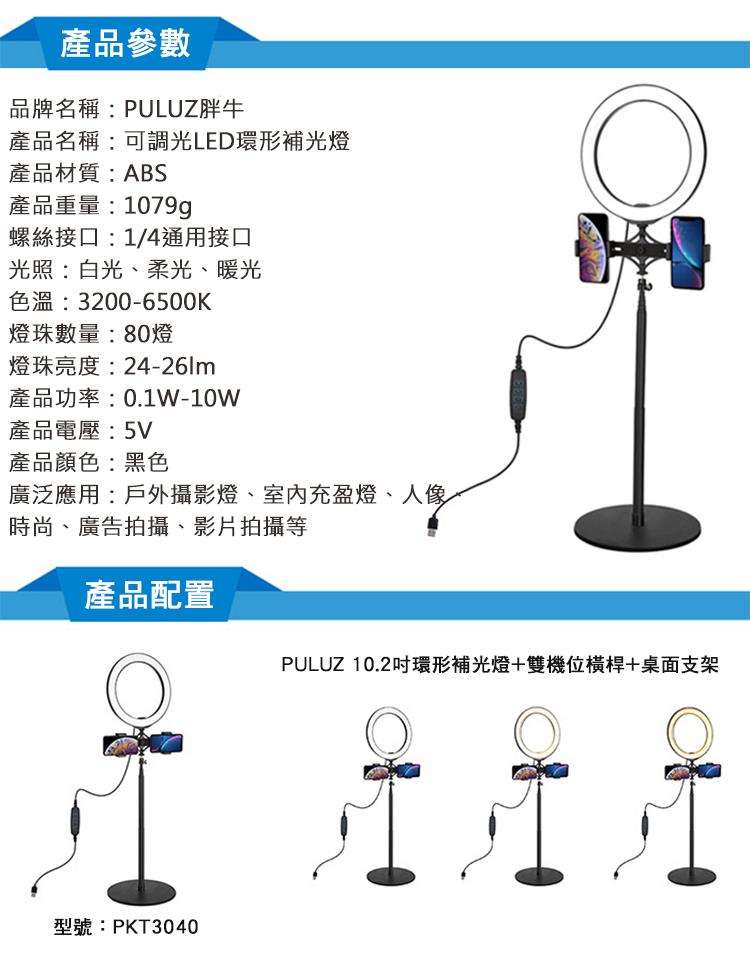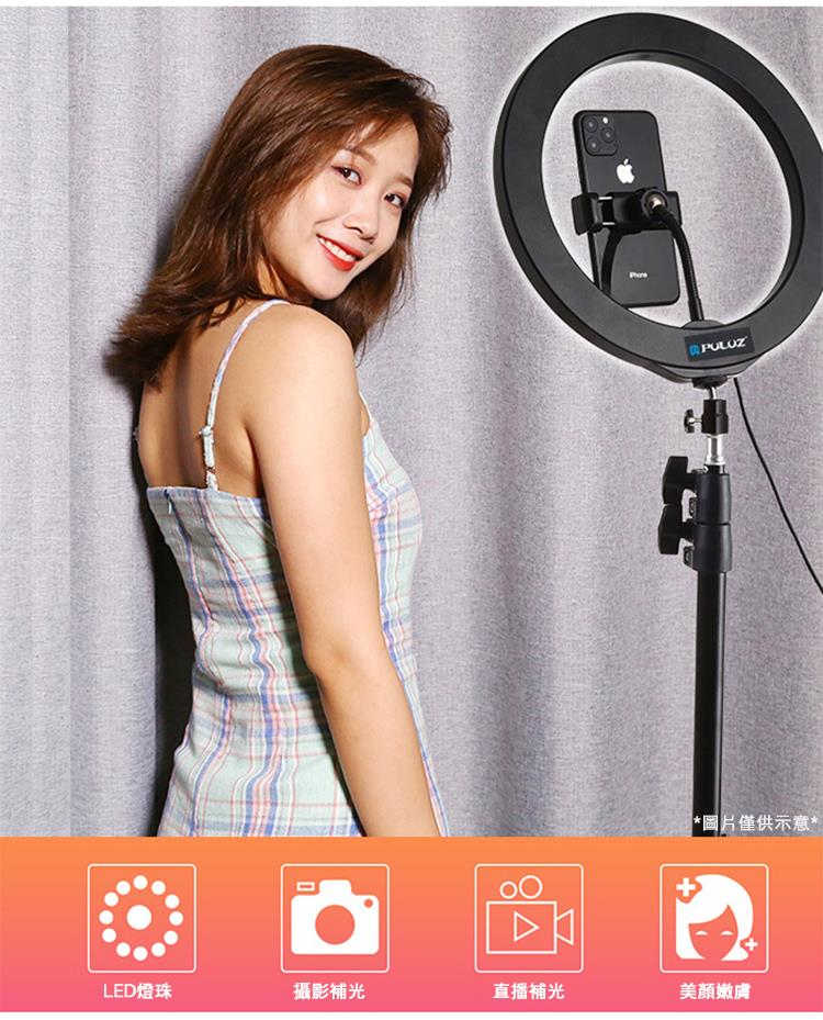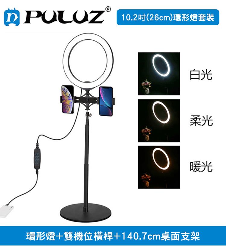 【胖牛 PULUZ】環形補光燈10.2吋+1.4米桌面架+雙夾