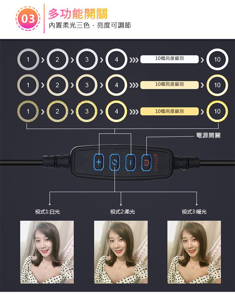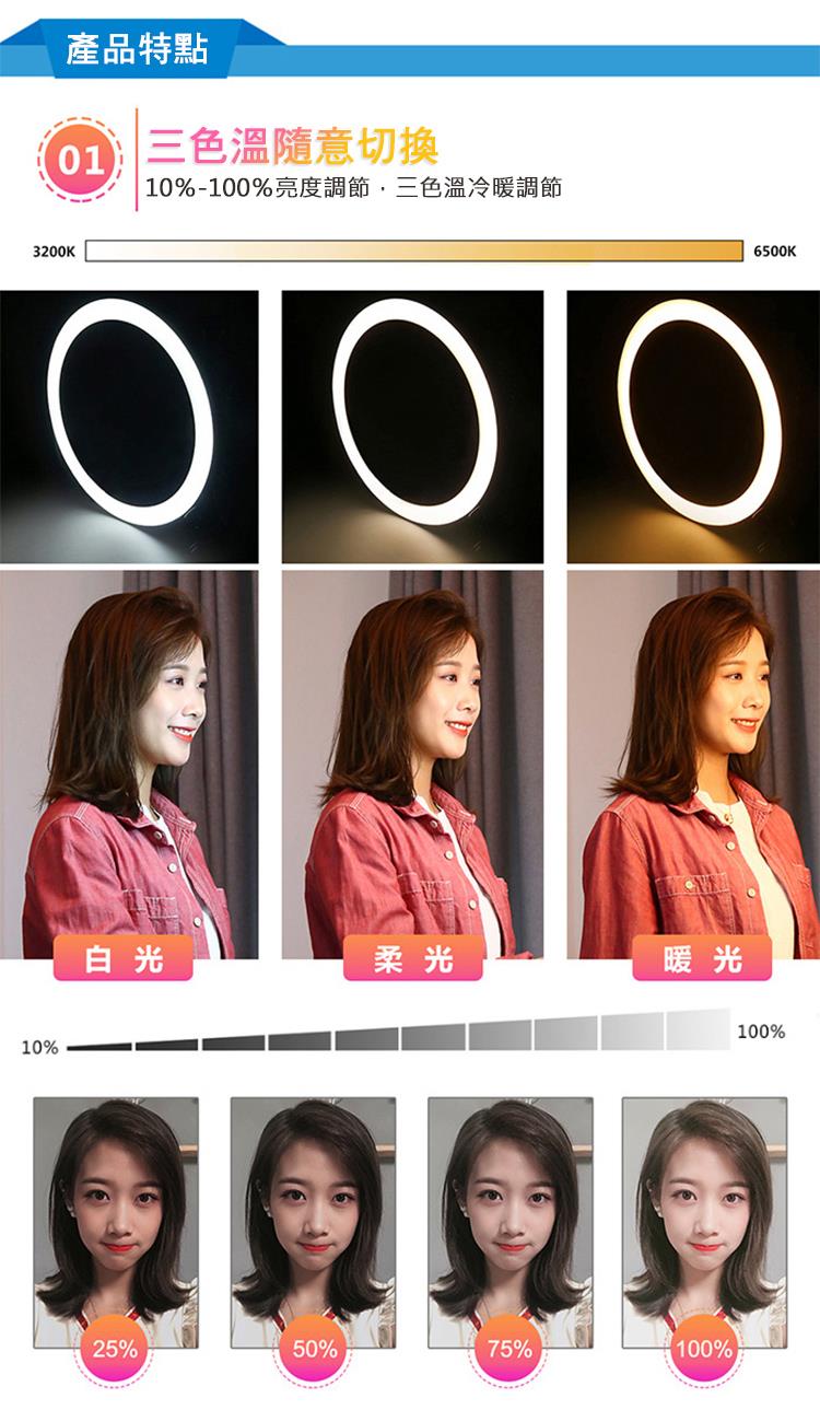 【品名】:胖牛 環形補光燈10.2吋+1.4米桌面架+雙夾