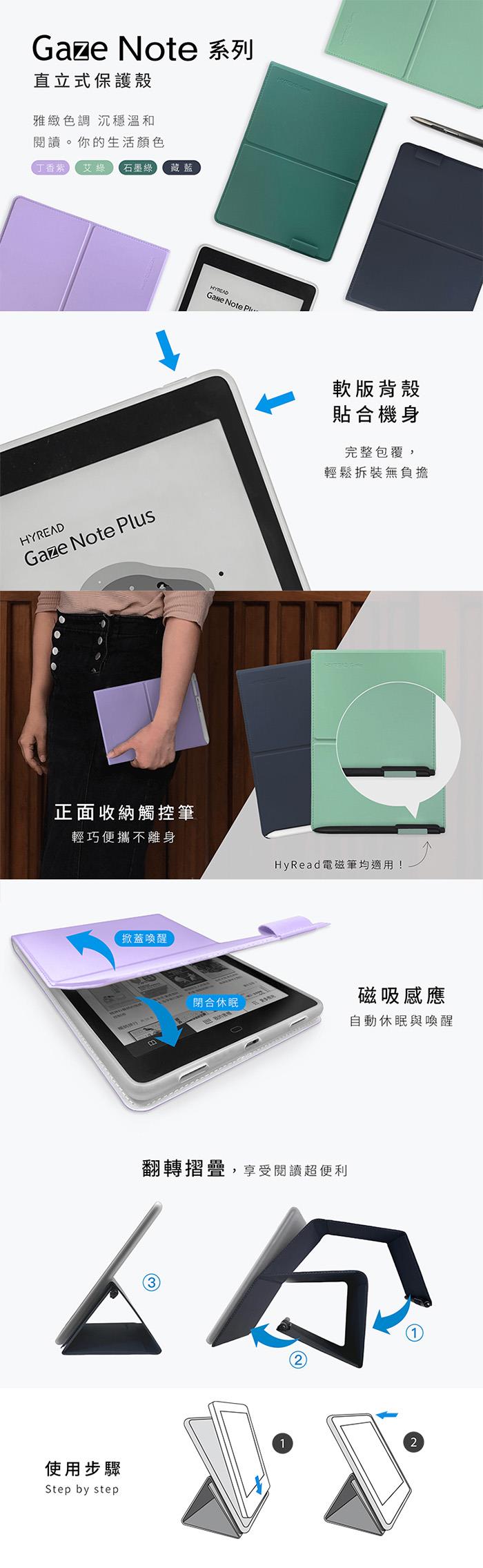 HyRead Gaze Note Plus 7.8吋電子紙閱讀器+Gaze Note系列 直立式保護殼(丁香紫)