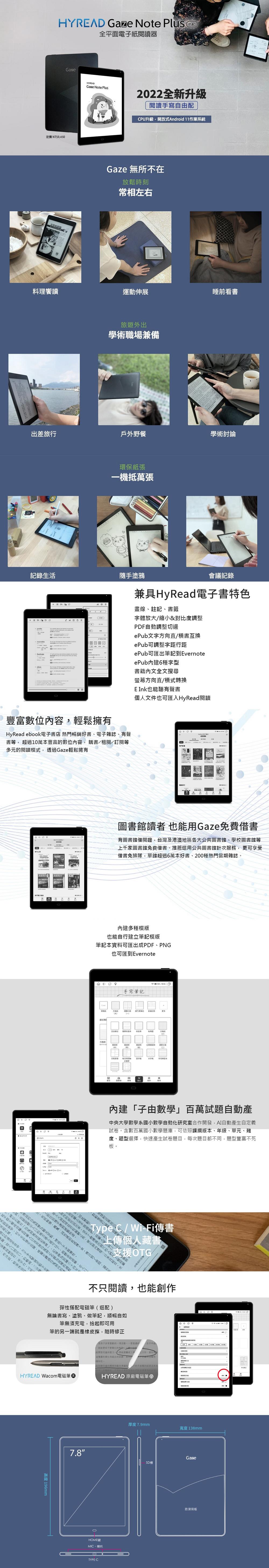HyRead Gaze Note Plus 7.8吋 電子紙閱讀器