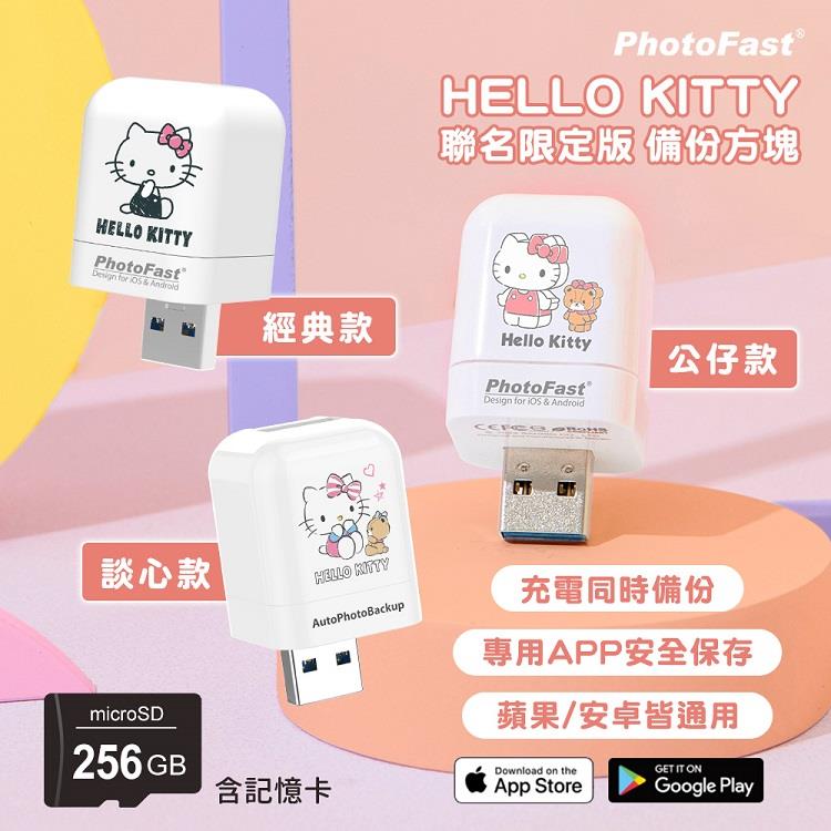 【Photofast】HELLO KITTY 雙系統手機備份方塊(iOS蘋果/安卓通用版)+256G記憶卡