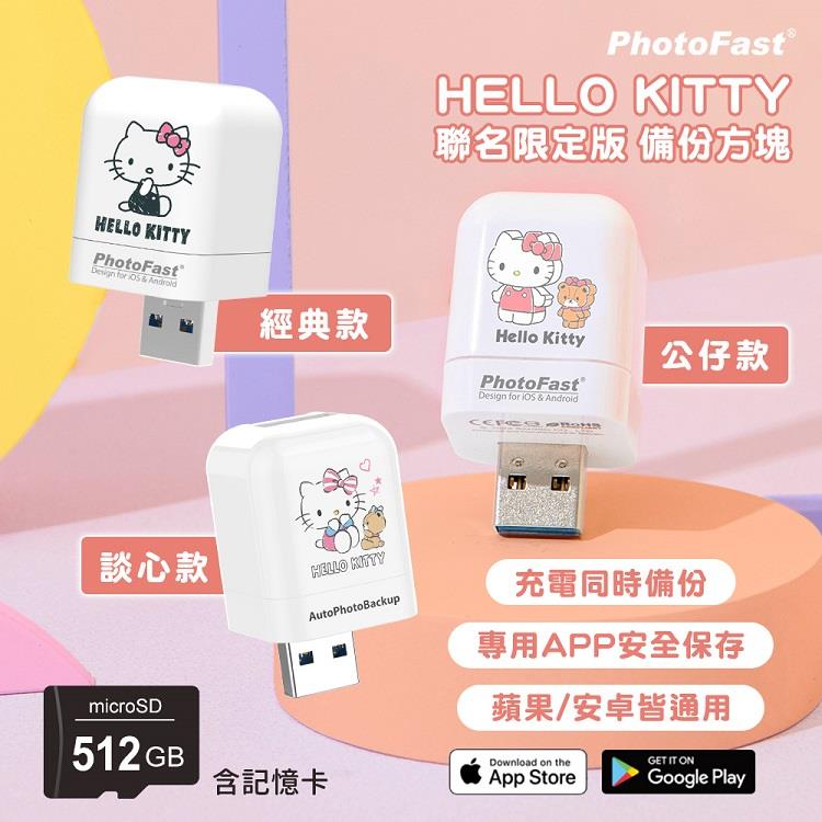 【Photofast】HELLO KITTY 雙系統手機備份方塊(iOS蘋果/安卓通用版)+512G記憶卡