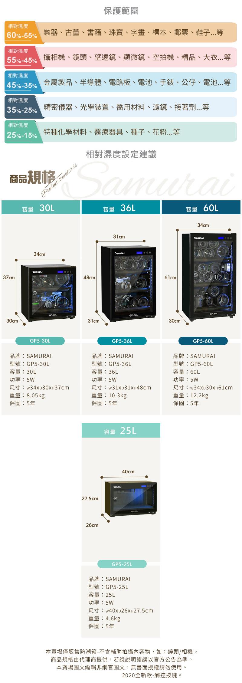 SAMURAI 新武士 GP5-36L 數位電子防潮箱(觸控型)2020款