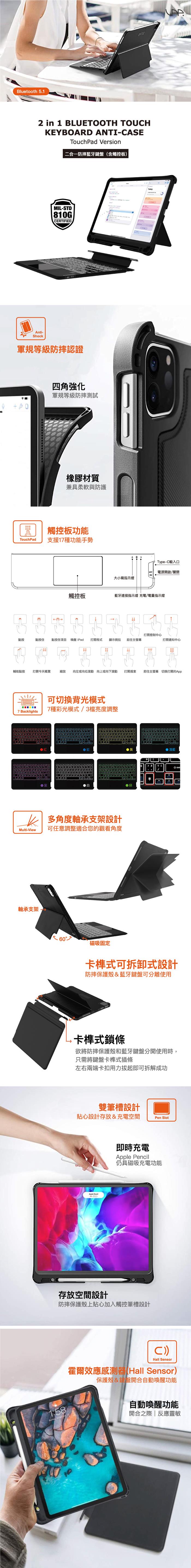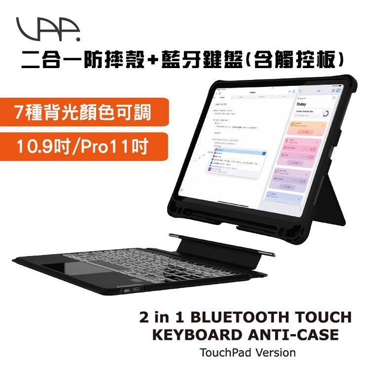 【VAP】iPad 10.9吋/iPad Pro 11吋專用 二合一防摔支架保護殼+觸控板藍牙鍵盤(七彩背光款)