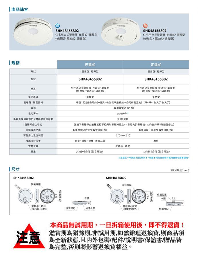 【國際牌Panasonic】住宅用火災警報器(偵熱型) SHK48155802C