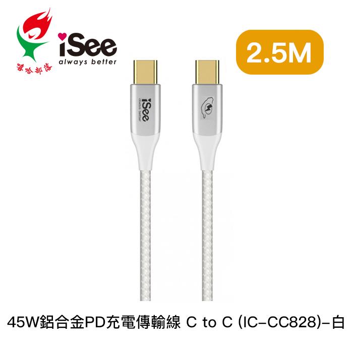 嘻哈部落 iSee CtoC 45W 鋁合金 PD 充電傳輸線 2.5公尺 白色 (IC-CC828)