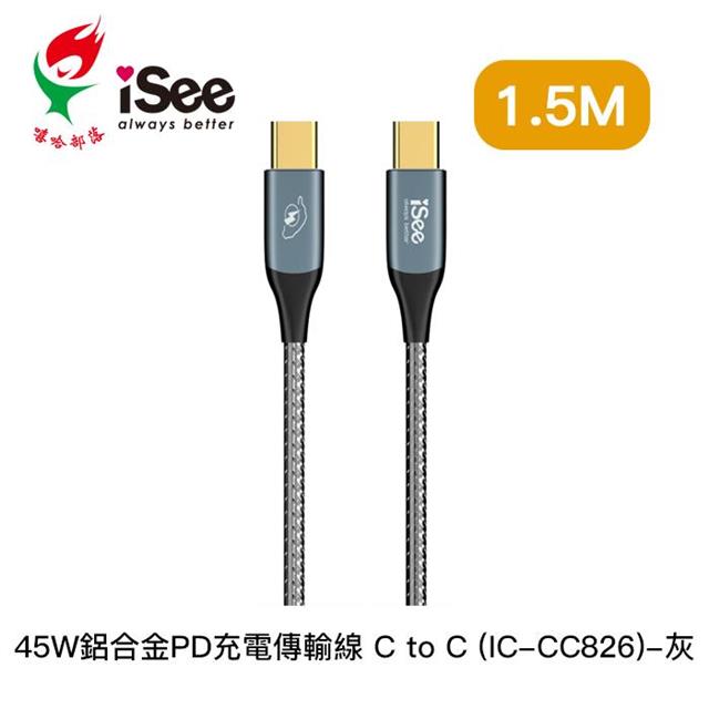 嘻哈部落 iSee CtoC 45W 鋁合金 PD 充電傳輸線 1.5公尺 (IC-CC826)