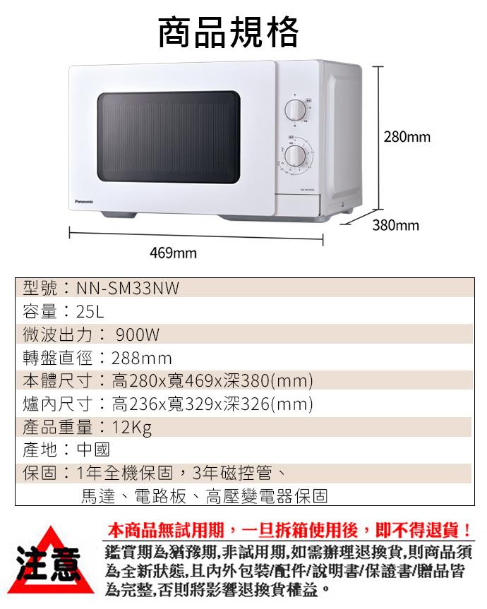 【國際牌Panasonic】25L機械式微波爐 NN-SM33NW