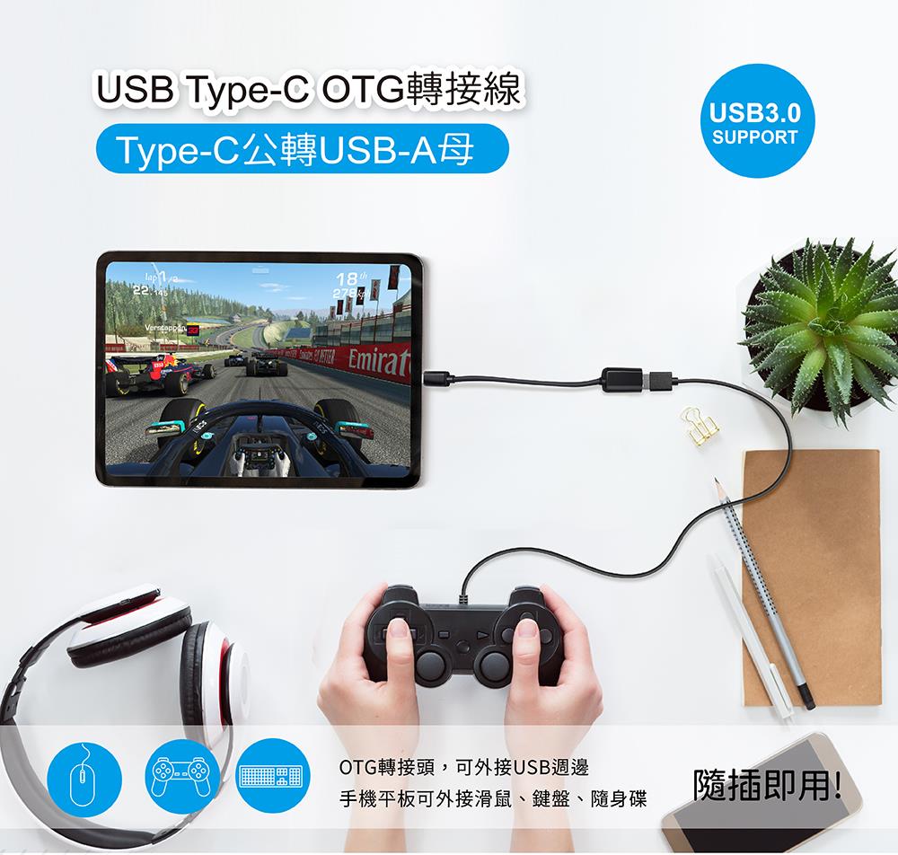 USB Type-C OTG轉接線 Type-C公轉USB-A母 適用鍵盤/滑鼠/隨身碟