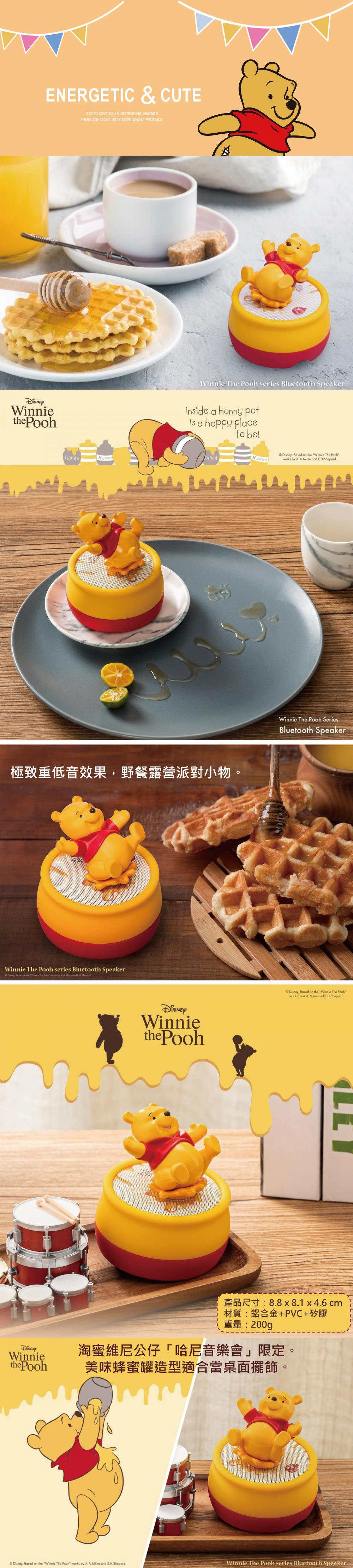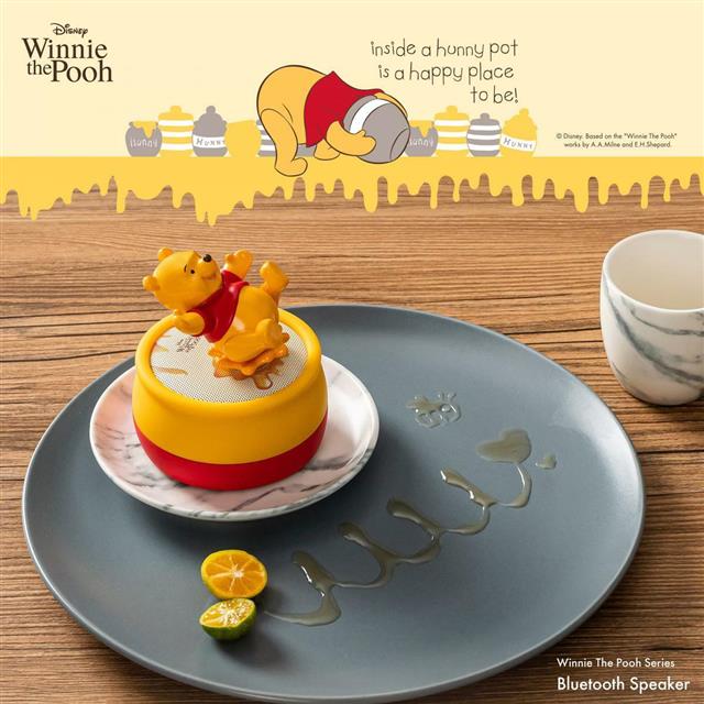 - 音響網罩點綴小熊維尼可愛元素。