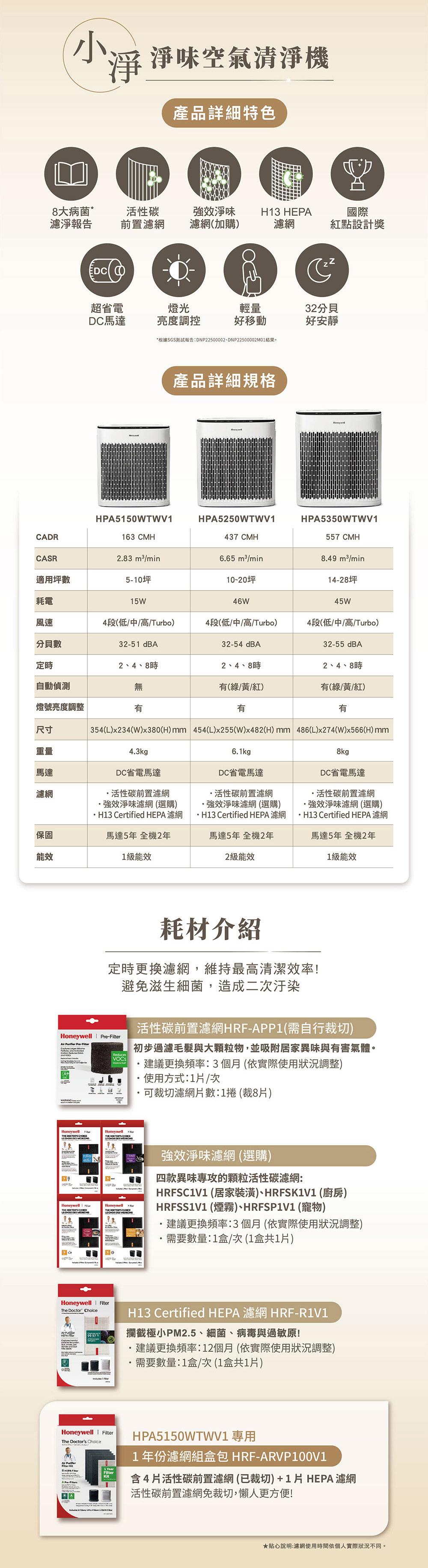 ●如欲加強淨味效果,可加購強效淨味濾網:HRFSS1(煙霧)、HRFSC1(家居裝修)、HRFSK1(廚房)、HRFSP1(寵物) (需另購1片,建議3個月更換一次)