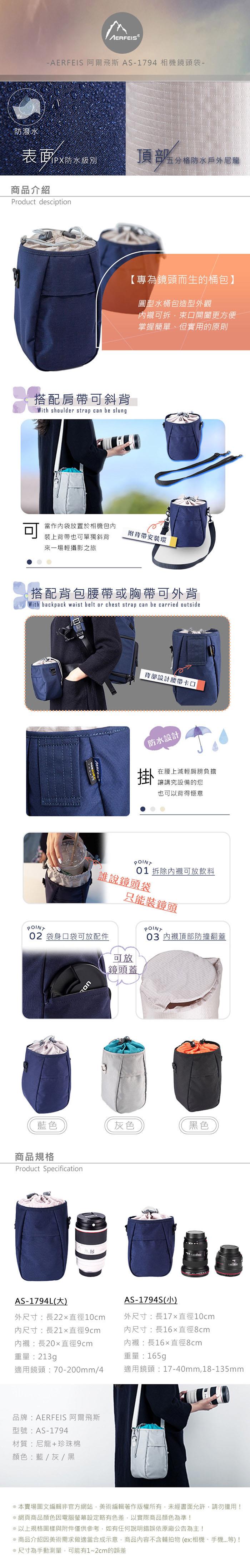 Aerfeis 阿爾飛斯 AS-1794L相機鏡頭袋(公司貨)