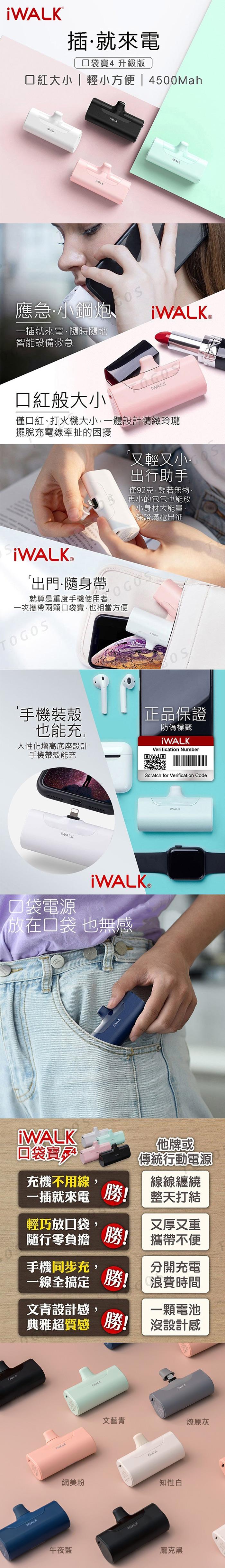 iWALK 四代 4500mAh口袋行動電源Type-C頭-午夜藍