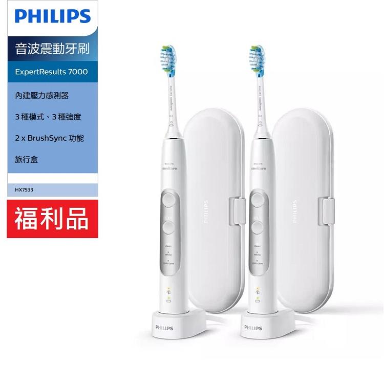 【箱損福利品】PHILIPS 飛利浦 Sonicare ExpertResults 7000 智能音波牙刷兩入組 HX7533