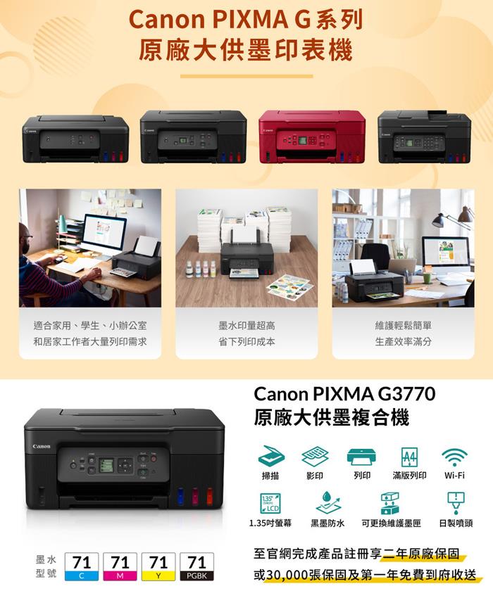 Canon PIXMA G3770 原廠大供墨複合機_紅(R)