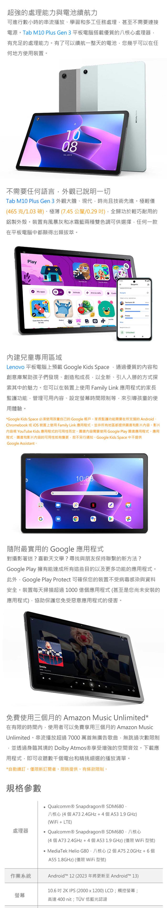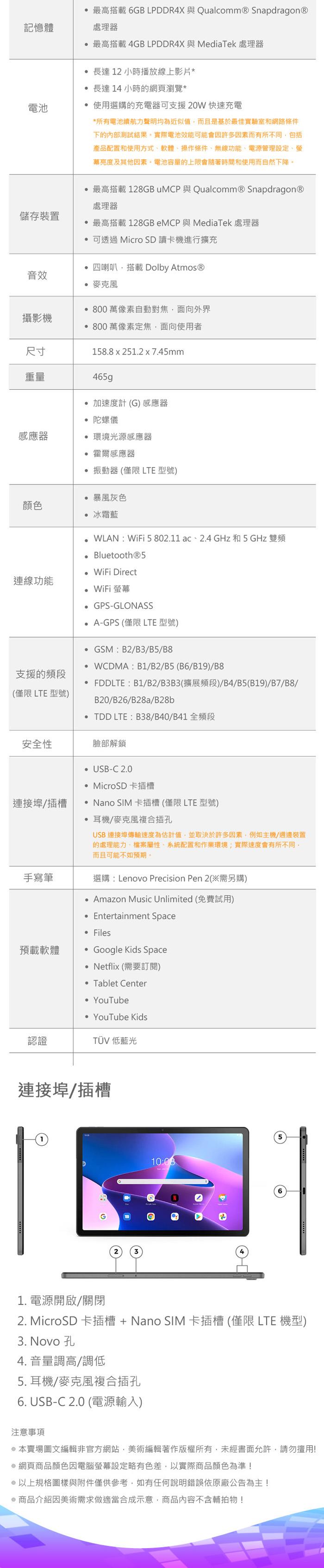 Lenovo Tab 10.6吋WiFi 平板 第3代(4G/64G) M10 Plus Gen 3 TB-125FU
