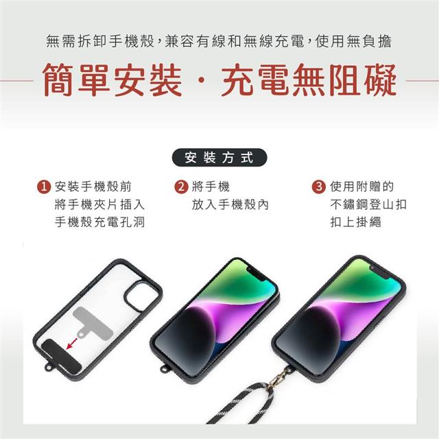 - 大膽玩色 獨一無二-保有自我同時 不畫地自限- 可調式掛繩 解放雙手- 不同粗度隨意搭配 戶外活動最佳首選- 簡單安裝 充電無阻礙