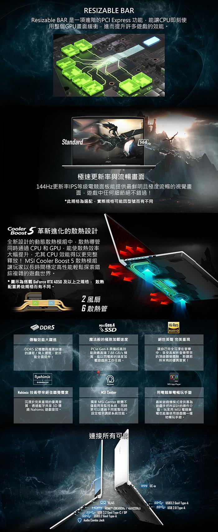 ●顯示晶片規格:GeForce RTX™ 4050 筆記型電腦GPU 6GB GDDR6