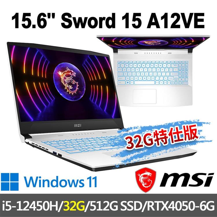 msi微星 Sword 15 A12VE-093TW 15.6吋 電競筆電(32G特仕版)