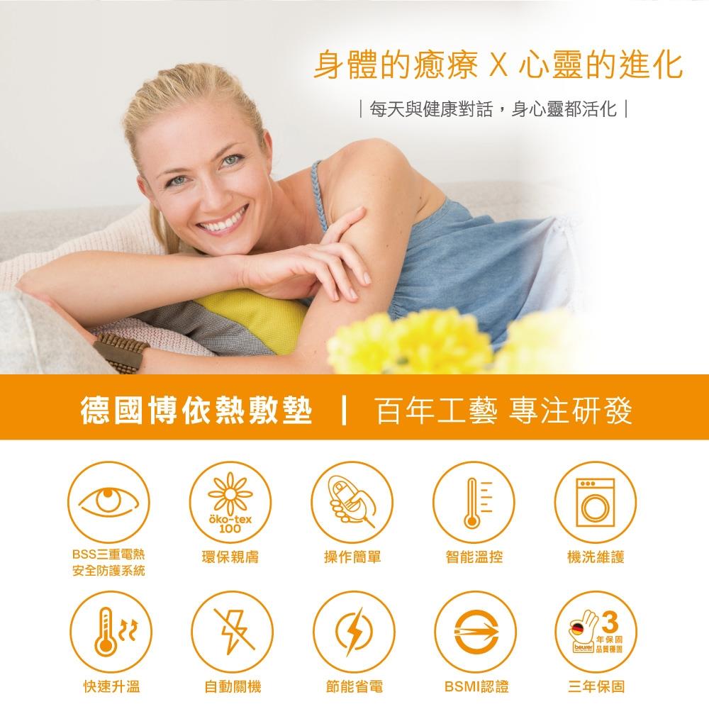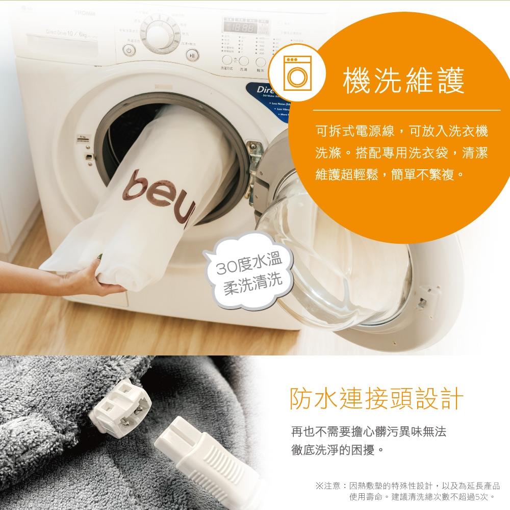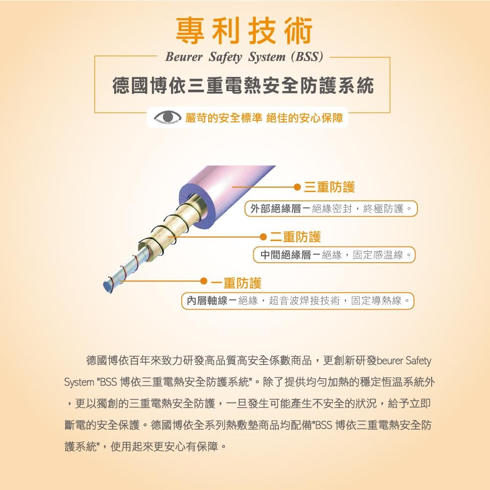 3 段溫度控制 90 分鐘自動關機 可機洗清潔維護 三重電熱安全防護系統 BSS 透氣性佳微纖維,讓肌膚備感舒適